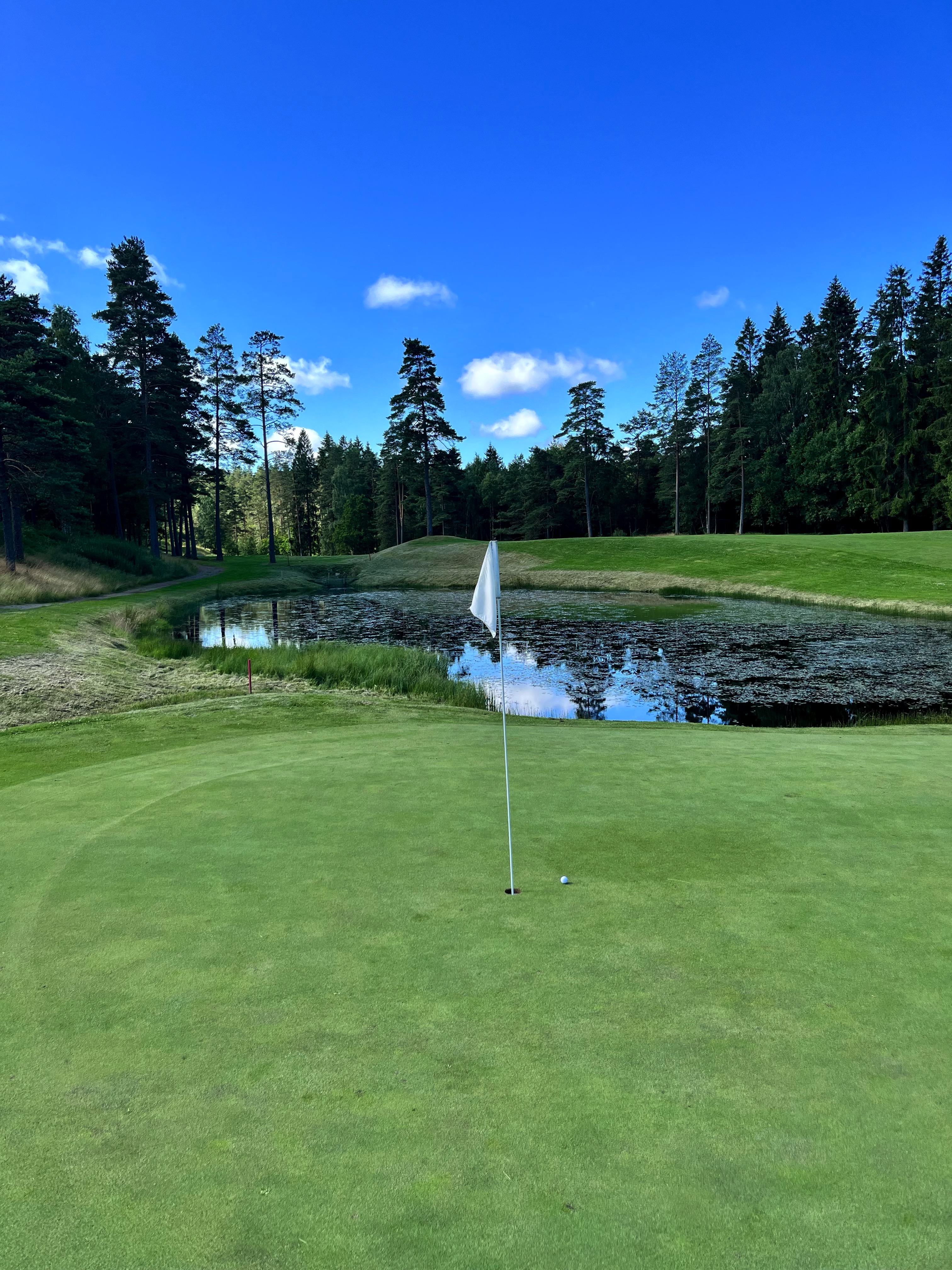 Banan är inte särskilt lång, men lite "knixig". Det gäller att placera bollen på ett bra sätt runt denna vackra utmaning.